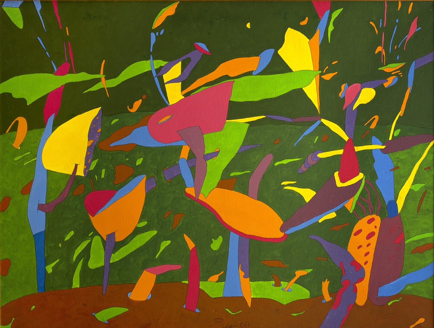 I když na svém staronovém směřování k duchovním hodnotám neměl Aleš Lamr v dalším vývoji co měnit, v jeho obrazech z posledního desetiletí můžeme sledovat další posun. Týká se to míry zobecnění a svým způsobem i odpsychologizování obsahu sdělení. Malíř ve stále větších formátech objevuje krásy jakýchsi základních tvarových konfigurací, atˇ již geometricky určitých či anarchisticky amorfních. Jakoby chtěl vysledovat všechny tvarové typy a prototypy, které určují syntetickou podstatu světa, včetně nově odmýtizovaného kosmu. Obraz svůj tvarový obsah situuje do abstraktní obecnosti a snad i nedohledna kosmických dálek.